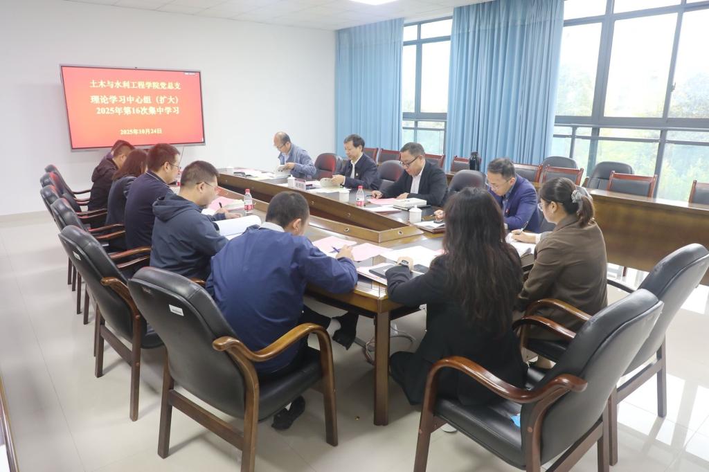 10月24日下午,土木与水利工程学院党总支理论学习中心组(扩大)2025年第16次集中学习会在知行楼347会议室举行,校长赵明阶到会指导。学校列席旁听组成员、学院党总支理论学习中心组成员、组织员、党支部书记、各办公室主任等参加了学习会。会议由学院党总支书记肖鹏主持。