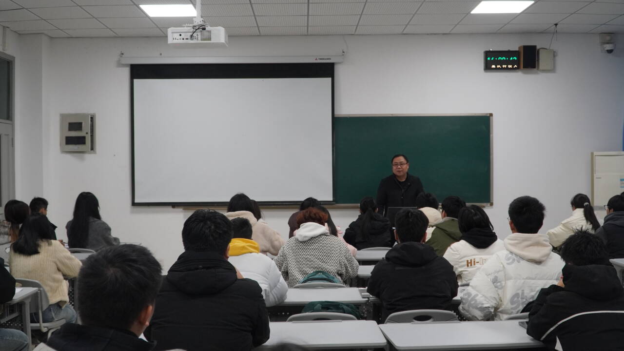 肖鹏以马克思主义中国化为切入点,结合党的二十届四中全会精神,从历史逻辑、时代发展、个人成长三个角度讲解了成为青年马克思主义者是信仰的必然选择,从理论武装、品德修养、行动担当三个方面期望同学们要不断锤炼知行合一的品格,围绕从“基础学习”到“全面思考”、从“课堂学习”到“实践历练”、从“图纸设计”到“蓝图跨越”三个层次,勉励同学们要以马克思主义铸就专业之魂,将个人理想融入国家战略,在中国式现代化建设新征程中挺膺担当、矢志奋斗,在服务国家发展大局中实现人生价值最大化。