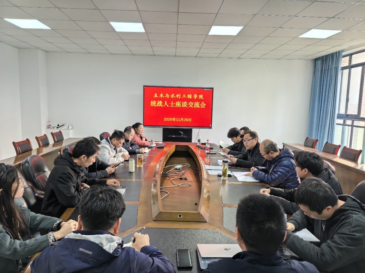 为不断凝聚共识、汇聚力量,共谋学院事业发展,11月26日上午,土木与水利工程学院党总支召开统战人士座谈交流会,学院党总支书记肖鹏、院长孙毅、各民主党派人士、无党派人士、党外高知代表参加座谈交流,会议由肖鹏主持。