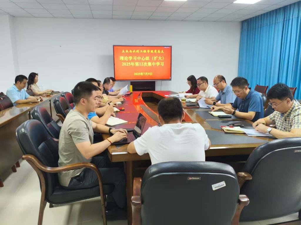 7月9日上午,土木与水利工程学院党总支理论学习中心组(扩大)2025年第12次集中学习在知行楼M347会议室举行。学院党总支理论学习中心组成员、组织员、各党支部书记、综合办、教务办和学生办主任、党务秘书等参加了学习会。会议由学院党总支书记肖鹏主持。