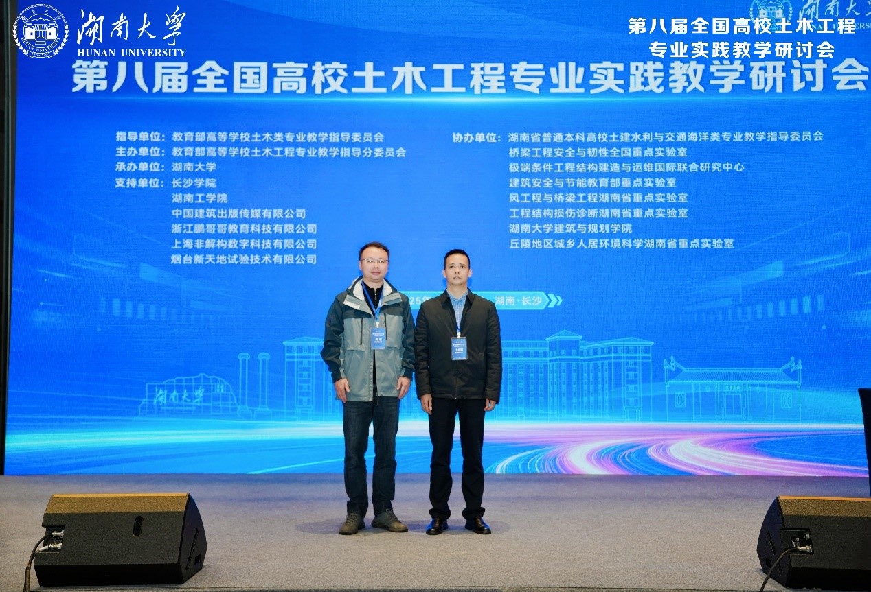 会议围绕“基于工程教育专业认证核心理念的实践教学体系构建与创新”“人工智能与大数据在土木工程实践教学中的应用”“智能建造与数字化转型下的实践教学体系重构”等内容进行了深入研讨。在 “院长(系主任)及实验(中心)主任联合论坛”中,两位老师详细介绍了我校在构建基于认证理念的实践教学体系、课程思政融入、深化产教融合等方面的特色举措与阶段性成果,并与国内同行进行了深入交流,获得了与会专家的广泛关注。